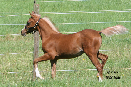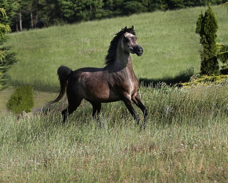 You've got to love it when your broodmare actually takes to heart (and uterus!!) that little whisper in her ear when you tell her what you wish she would produce. Baskette listened and delivered exactly what I was hoping for with this filly! Sired by National Champion KM Bugatti, Burlesque is a lovely addition to Wild Side Arabians. She is as sweet as she is refined, with an absolute tea-cup muzzle but the attitude that will serve her well in the show-ring. She will grey out over time; from pictures of her sire at comparable ages, she'll turn steel grey before whiting out. My sincere thanks to Kristi Waters for making Bugatti--with his extensive list of show accomplishments--available to the small breeder! Photos of Bugatti are included with Burlesque's slide show, photos of her dam are above.